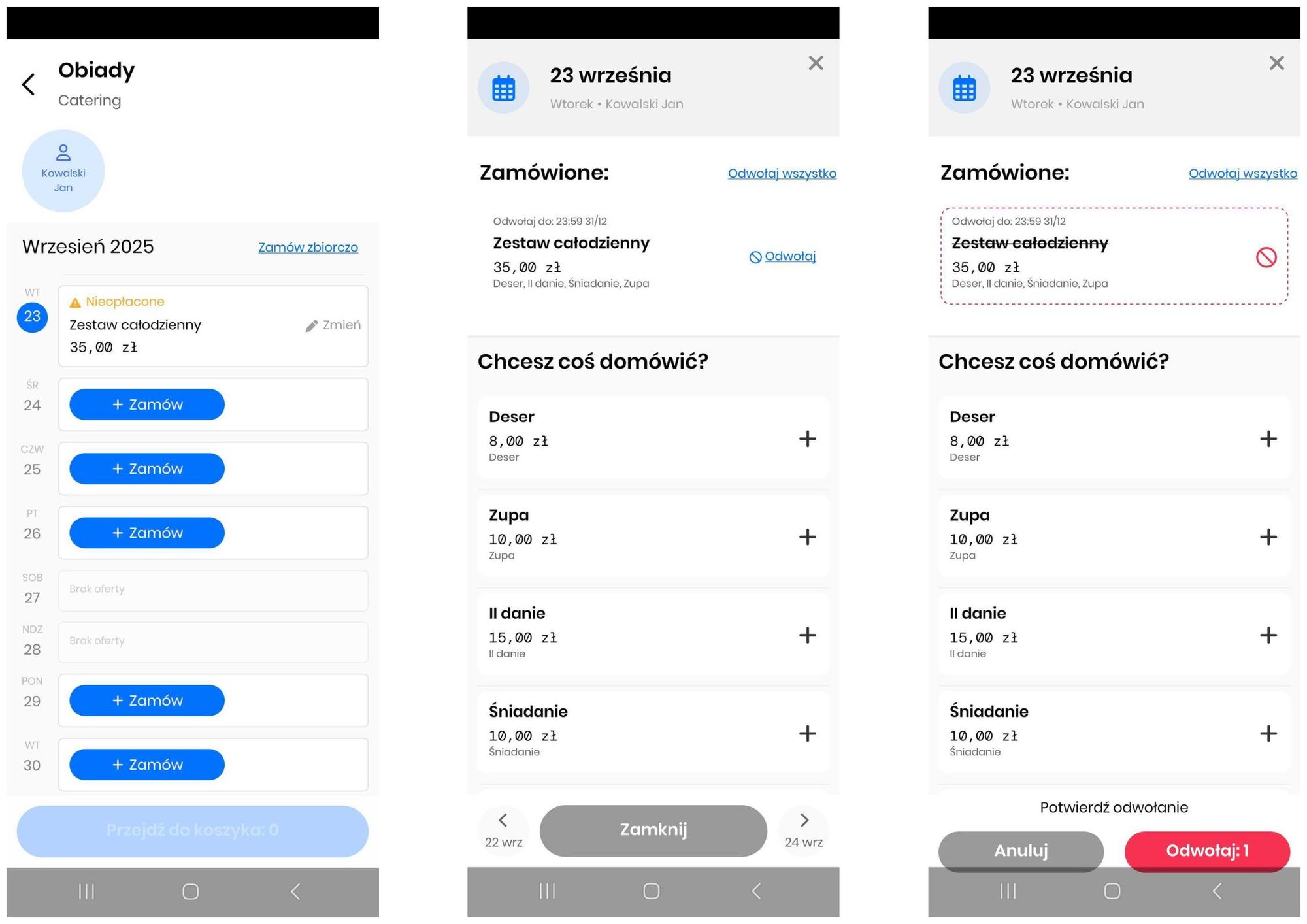 Po odwołaniu posiłku, nie powinien być on widoczny w kalendarzu zamówień.