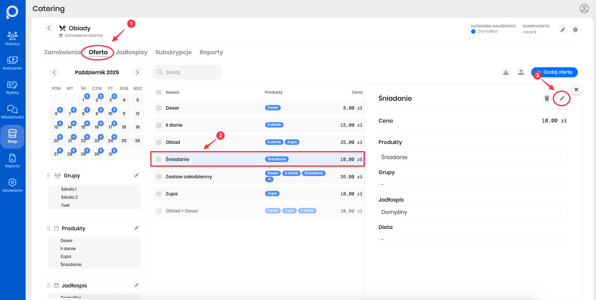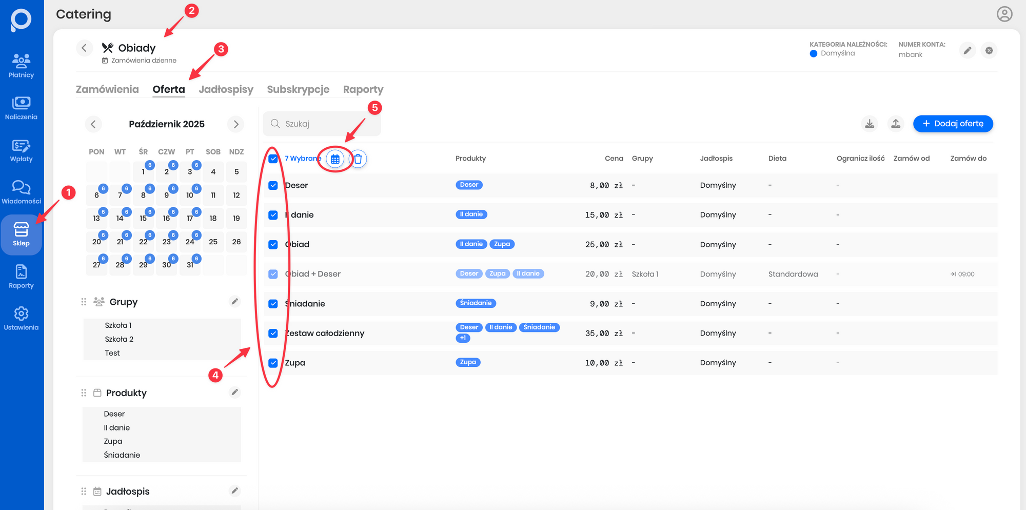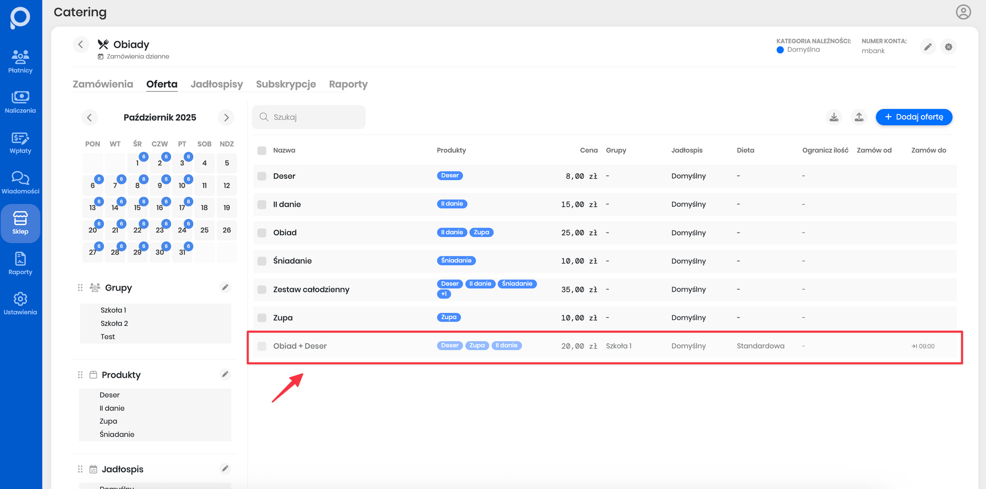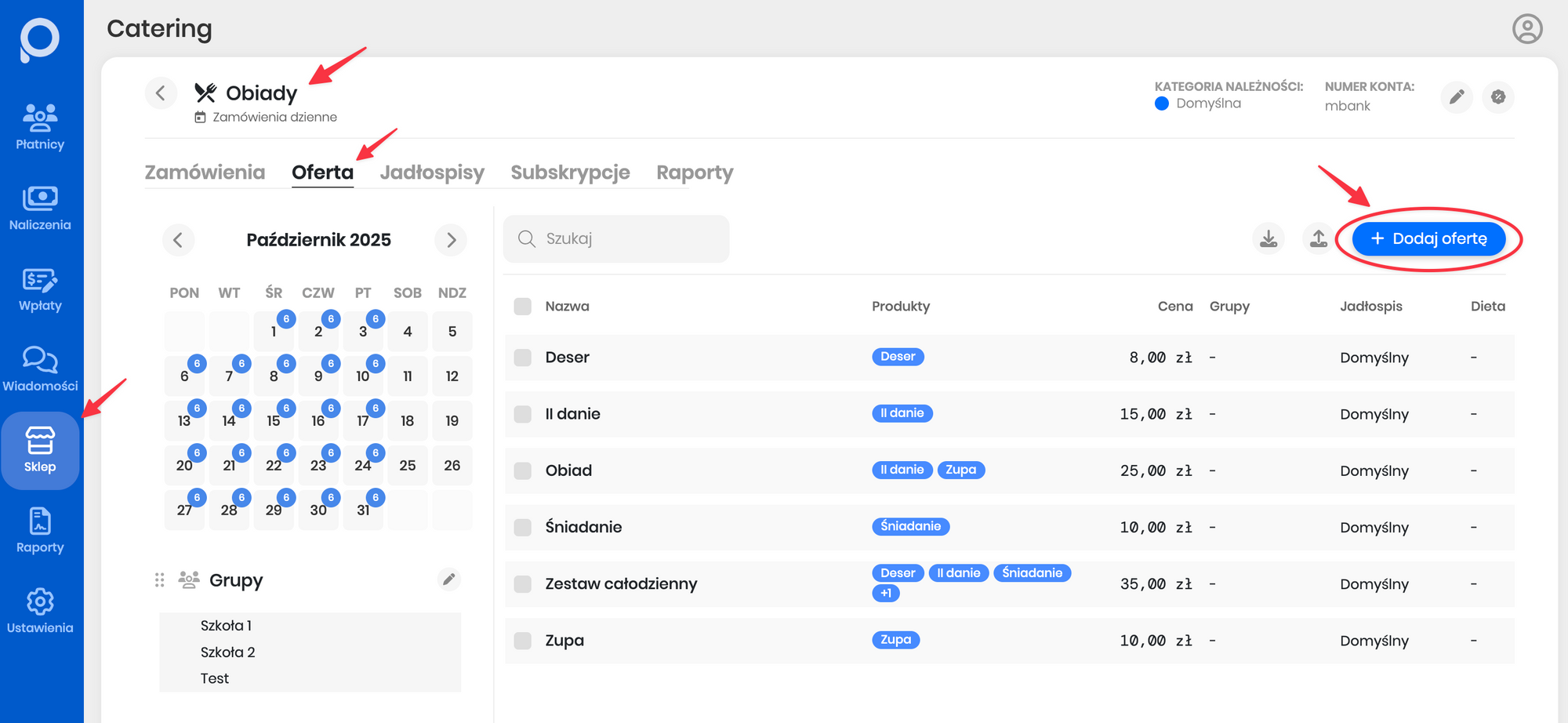 1. Wejdź w "Sklep" -> w katalog "Obiady" -> w zakładkę "Oferta",