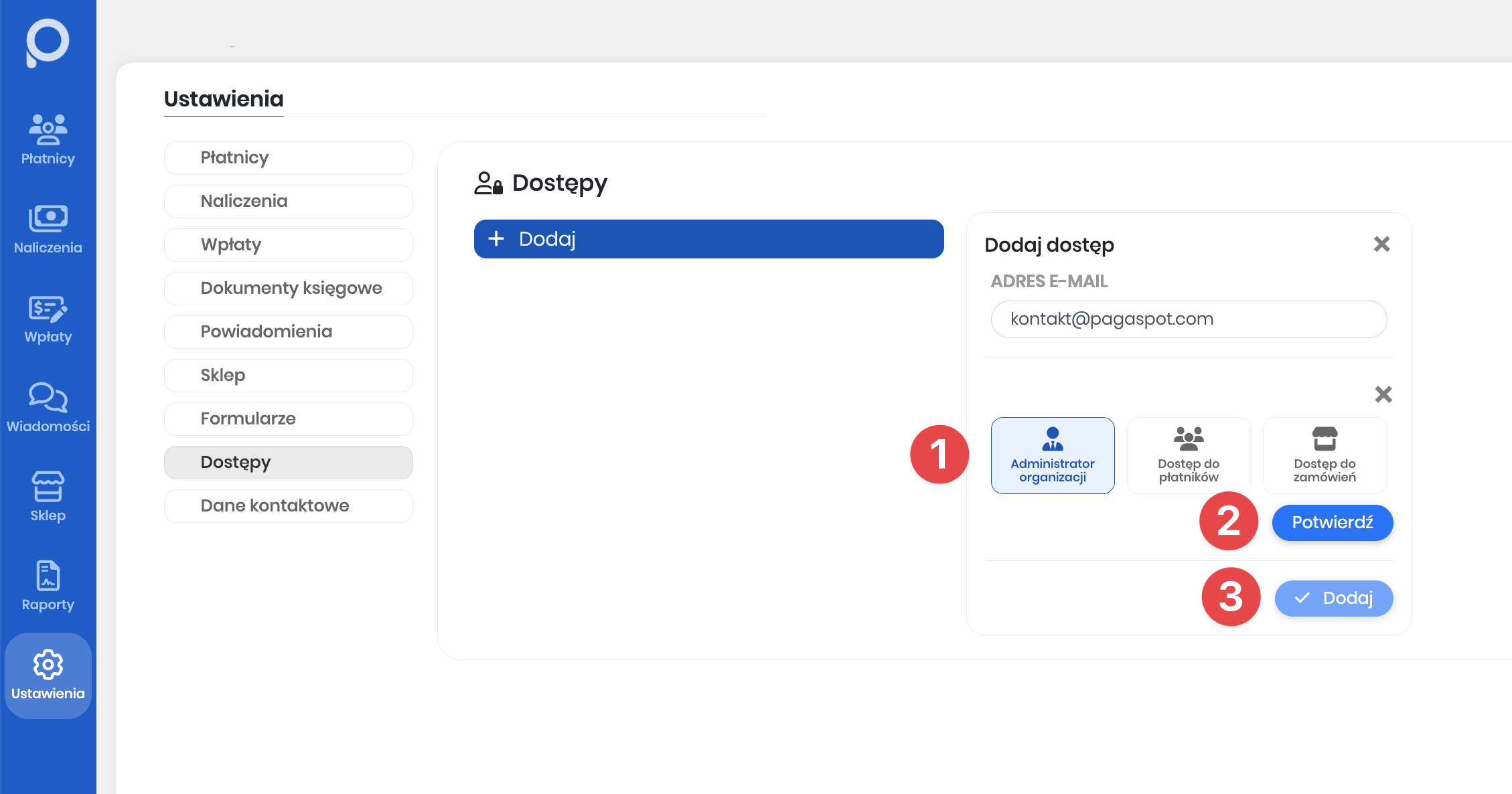 Wybierz rodzaj dostępu, kliknij Potwierdź i na sam koniec Dodaj.