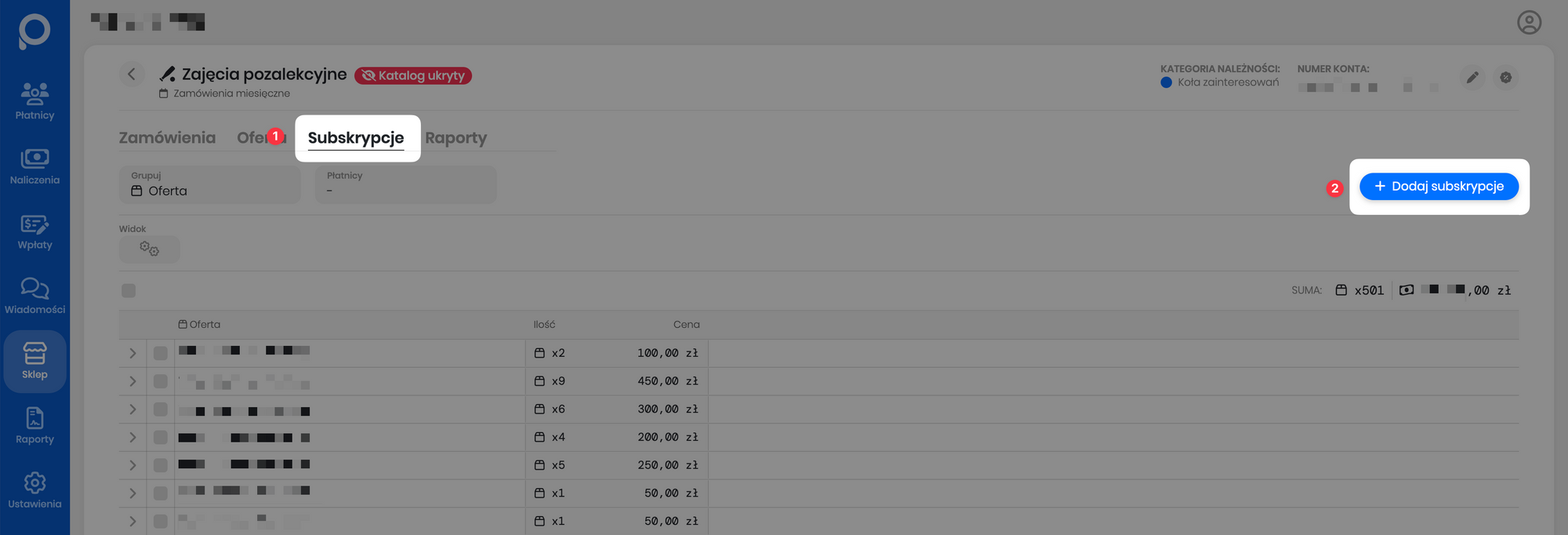 Wejdź na ekran sklepu, do zakładki oferta. Wybierz pozycję w ofercie i kliknij edytuj. Na dole formularza edycji znajdziesz możliwość włącznia subskrypcji.