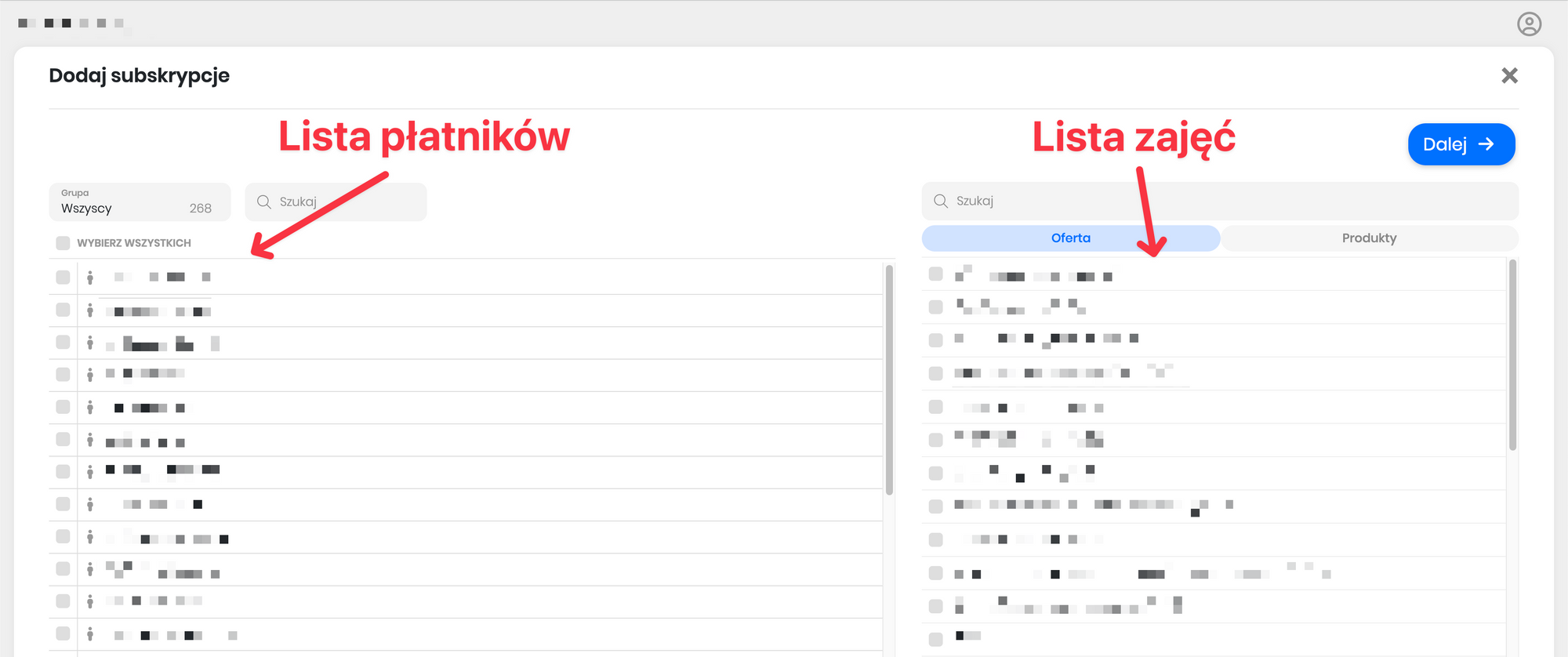 - po lewej stronie tych, których chcesz dodać do subskrypcji
